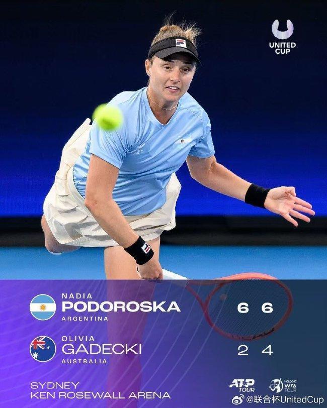 此外,在悉尼险些同期进行的F组首战中,阿根廷队迎战澳大利亚队。首场女单比赛中,波多罗斯卡用时1小时29分钟,直落两盘,以6-2/6-4降服盖德基,为阿根廷先下一城。