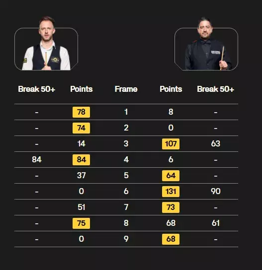 特鲁姆普开局3-1朝上,之后史蒂文斯连追三局。第8局,特鲁姆普在被超11分的情况下追回,通过延分争黑转圜赛点。决胜局,史蒂文斯几次上手锁定胜局。